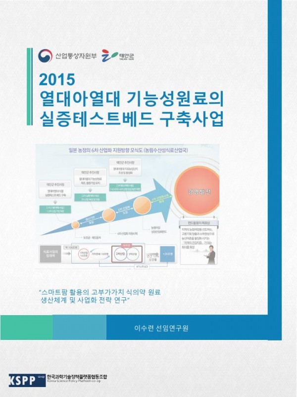 2015 열대아열대 기능성원료의 실증테스트베드 구축사업 관련링크 페이지 정보 작성일20-02-19 18:51 조회4,249회 본문 스마트팜 활용의 고부가가치 식의약 원료 생산체계 및 사업화 전략 연구 이전글 목록