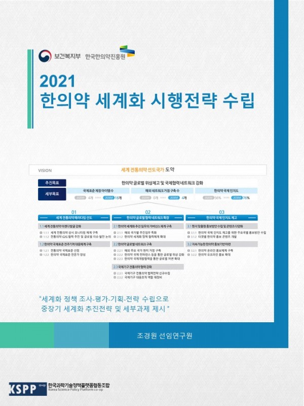 한의약 세계화 시행전략 수립 관련링크 페이지 정보 작성일22-03-03 13:13 조회5,192회 본문 한의약 정책의 글로벌 역량 강화를 위한 정책 조사 및 대안 제시 이전글 다음글 목록