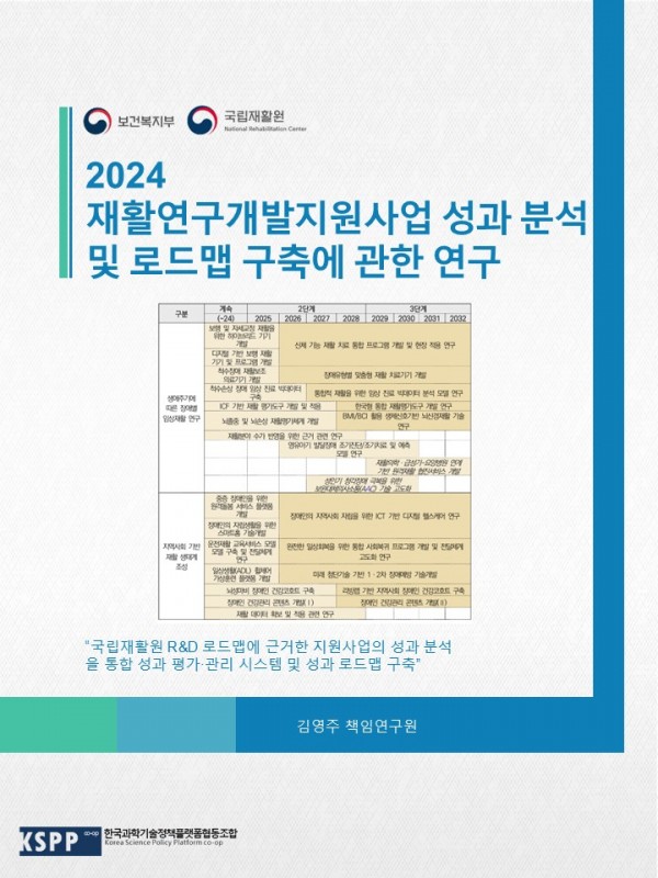 재활연구개발지원사업 성과분석 및 로드맵 구축에 관한 연구 관련링크 페이지 정보 작성일26-03-04 16:19 조회692회 본문 국립재활원 R&D 성과체계 및 성과로드맵 구축 이전글 다음글 목록